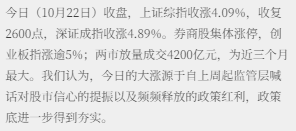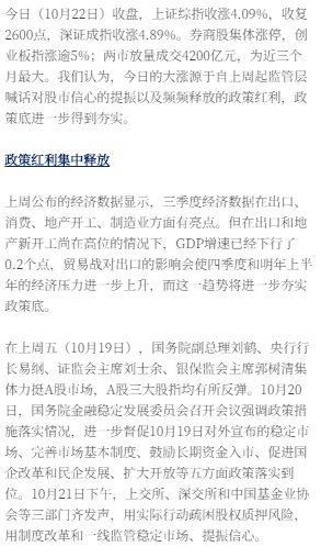 政策红利释放,市场大幅反弹——10月22日A股大幅反弹 |长城策略观点|汪毅,包婷,潘京